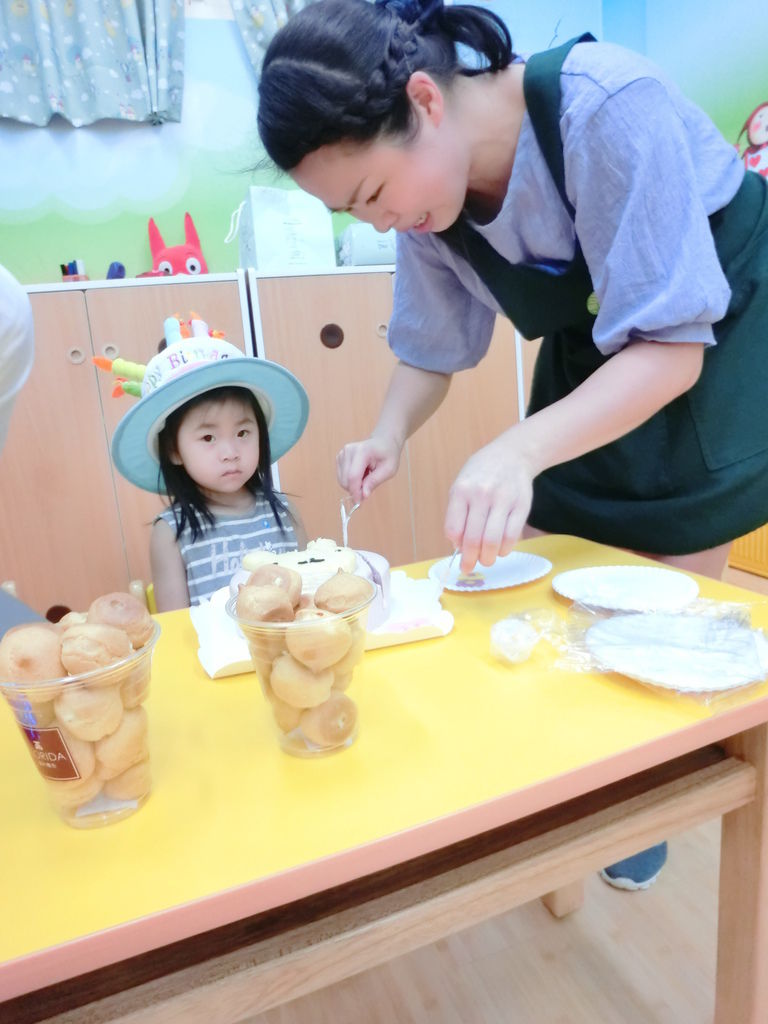 我一到她學校,小朋友們看到蛋糕跟點心